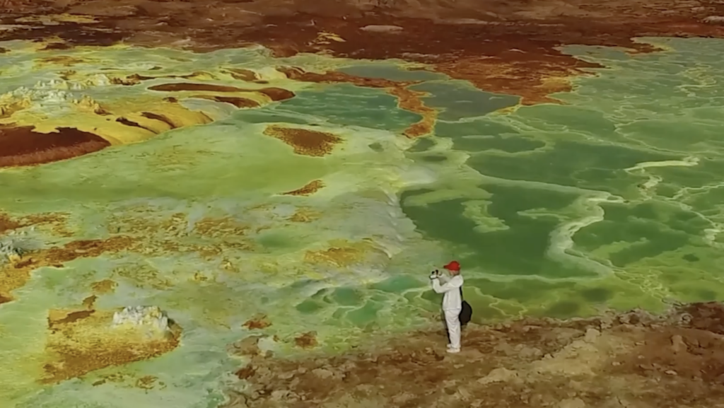 Dallol is in the Danakil Depression, in a region called Afar. It is one of the hardest places to live. Its daily temperatures average higher than 34 °C (93 °F), and it regularly tops 50 °C (122 °F). Dallol is 125 m (410 ft) below sea level and receives very little rain throughout the year, so it’s basically a desert. And Danakil is atop three tectonic plates that keep shifting. It has multiple rock formations, springs and geysers.