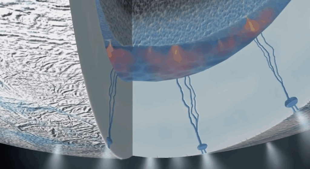 But if these bright plumes of mysterious vapor were a sight to behold, scientists were more in awe of what remained hidden. Beneath 40 km (25 miles) of thick ice, there is an ocean on Enceladus, and it’s remarkably similar to the oceans we have on Earth, where life might have begun.