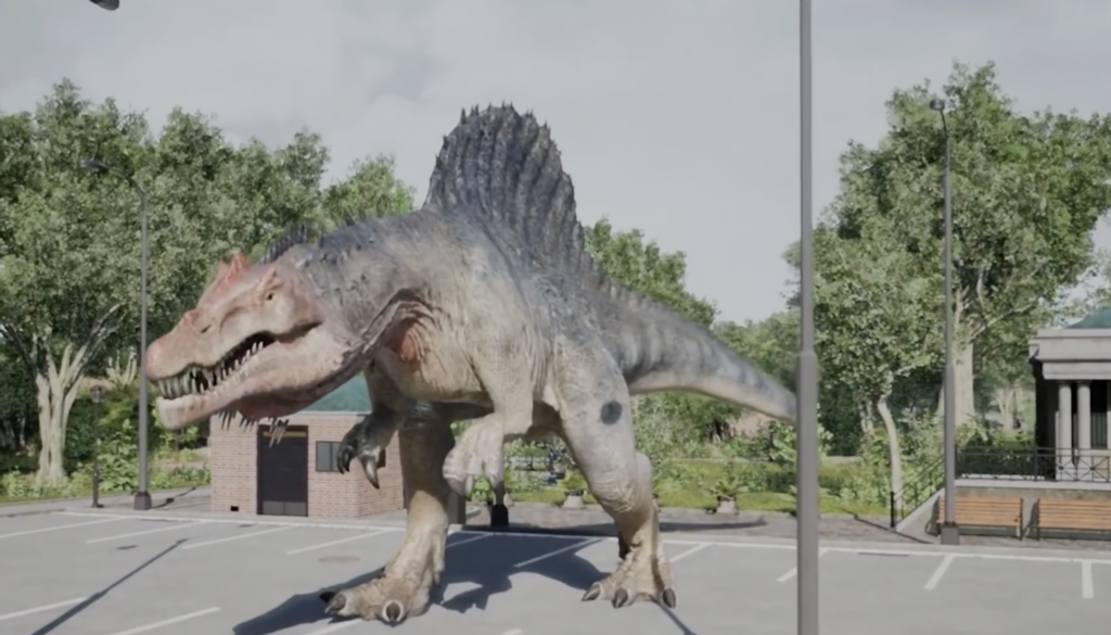 Suddenly a scream pierces your ears. You turn around and see a huge Spinosaurus devouring your guide. It still seems hungry, and its eyes are locked on you. You’ll have to think fast if you want to live.