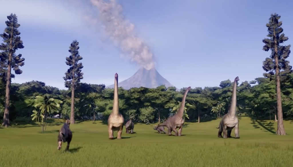 A new dinosaur-themed amusement park with real dinosaurs just opened. And you’re part of the first group of visitors.