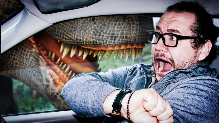 A new dinosaur-themed amusement park with real dinosaurs just opened. And you’re part of the first group of visitors.