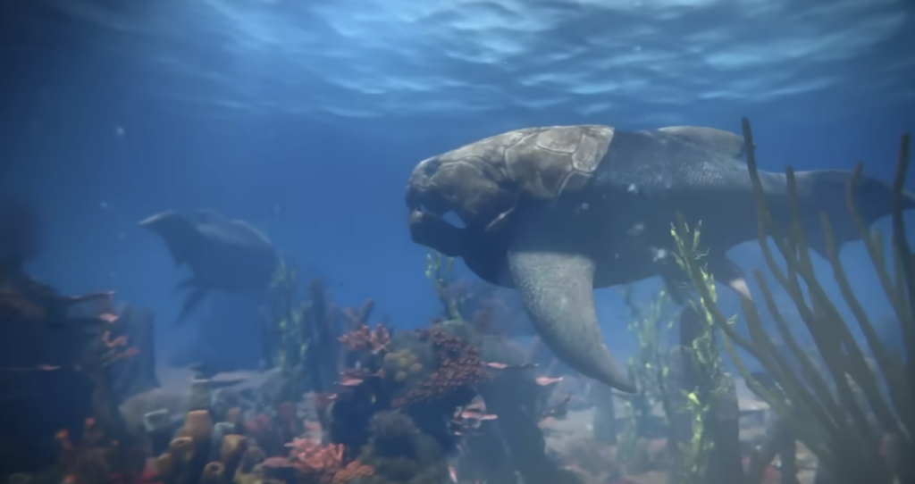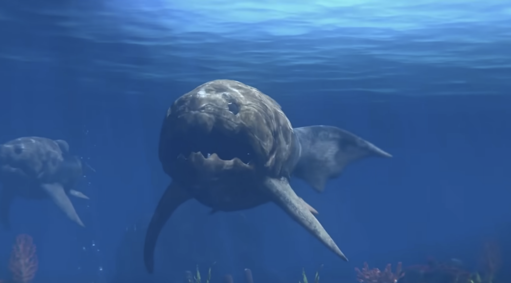 The other dominant species were Cartilaginous fish with skeletons covered in cartilage. These are the ancestors of sharks and rays. But you don’t have to worry about sharks. Oh no, there’s something far bigger, and scarier!