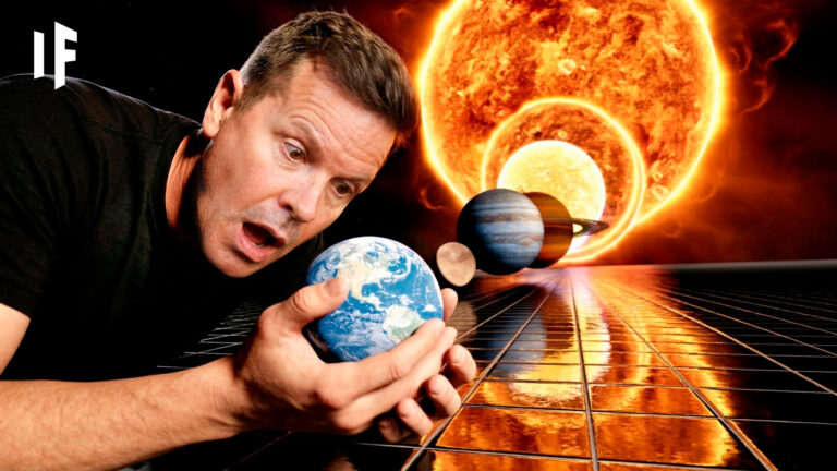 Imagine shrinking Earth to the size of a small ball to reveal just how vast the Universe is. If it were 12 centimeters wide, Jupiter would stretch over a meter across beside it. But the Sun would be far too large to fit in the same view, towering far beyond the comparison.