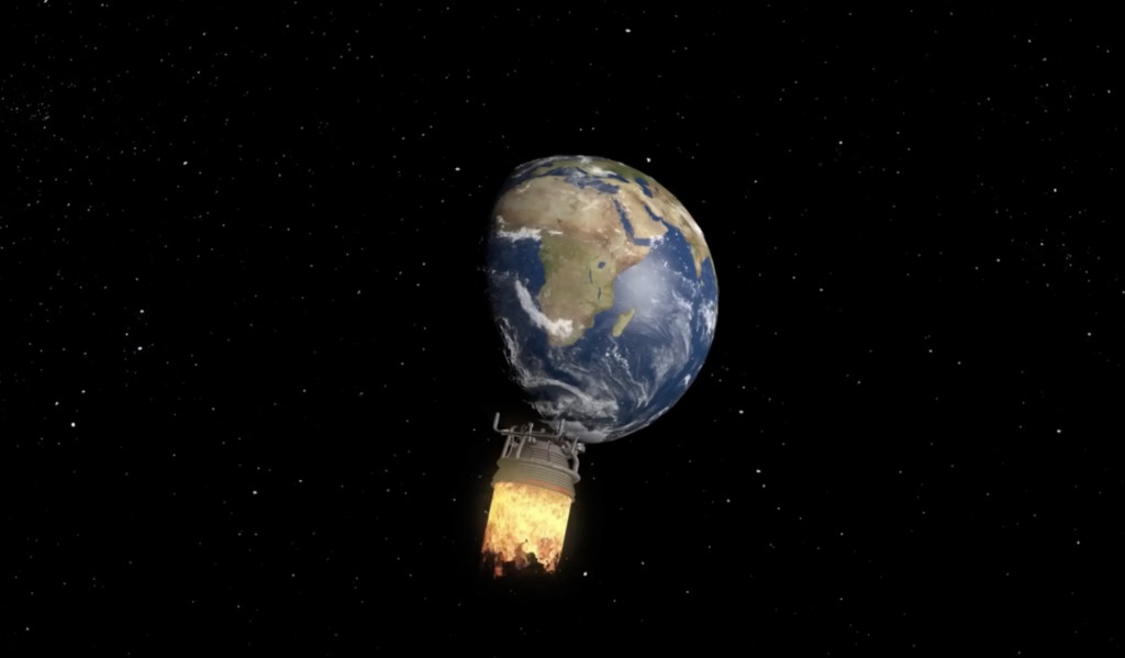 The most obvious way to do this would be the one most widely used today for propelling spaceships. Chemical rockets. Launching one single 500 metric ton rocket kick-started by a chemical reaction into space could use as much as 112,000 kg (29,600 gallons) of fuel. So the amount you’d need to launch Earth out of orbit would be, well, simply out of this world.