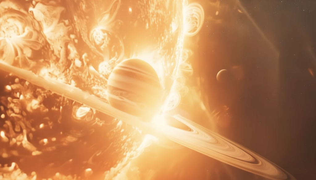 But that doesn’t mean it’s not the end of days for our biggest neighbor. Its atmosphere would be getting stripped away, forming a glowing ring of dust and gas around the Sun. This is called an accretion disk.